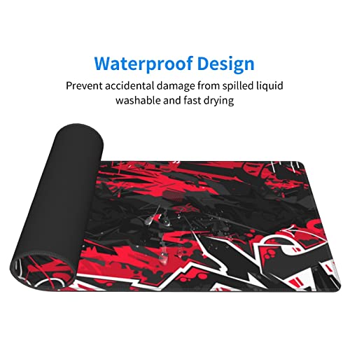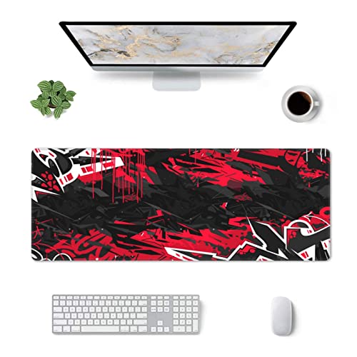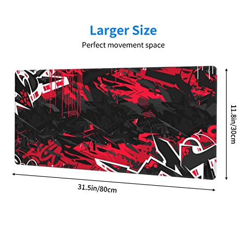 YANGZHI - قاعدة ماوس كبيرة بتصميم جرافيتي هيب هوب مقاس 30 × 80 سم، قاعدة ماوس كبيرة ممتدة من المطاط غير قابلة للانزلاق بحواف مخيطة للكمبيوتر المكتبي للألعاب والكمبيوتر المكتبي