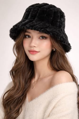 Generic - قبعة باكيت شتوية من الفرو مضلع، أسود، نمط مبطنة للرجال والنساء