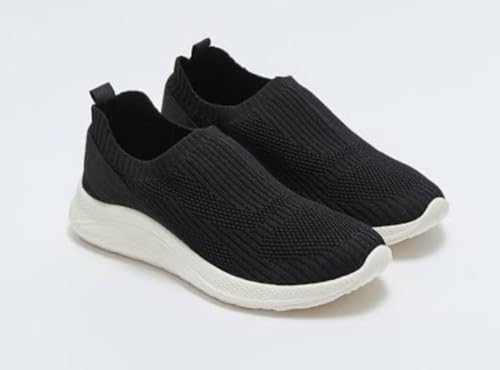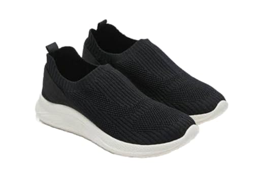 Generic - حذاء رياضي سهل الارتداء بنسيج مضلع, أسود مع نعل أبيض, مريح للمشي (39)