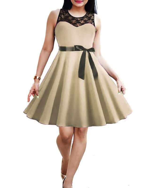 Generic - فستان نسائى اسكوبا مزين بدانتيل اسود معاة حزام ستان