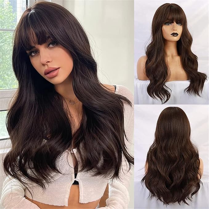 Generic - باروكة شعرصناعى أسود متوسط الطول ويفي للنساء، مع مشابك للتثبيت (اسود, متوسط)