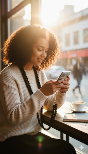 Generic - سلسلة موبايل سيليكون أسود للرقبة، حزام حمل الهاتف المحمول، خرز ناعم للاستخدام اليومي والسفر، متوافق مع جميع الهواتف