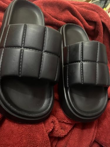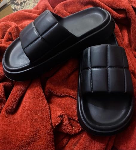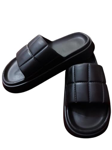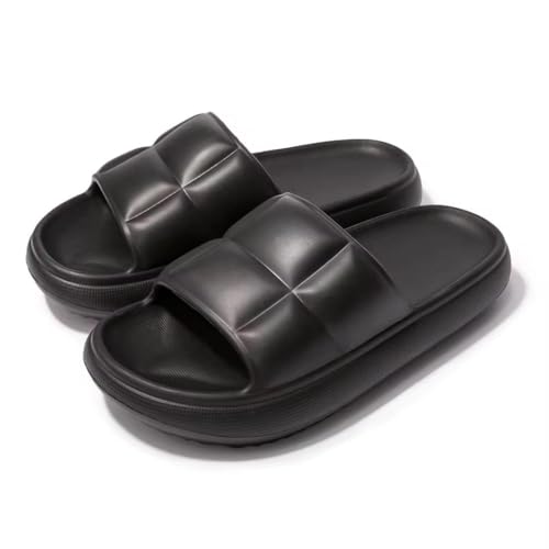 Generic - شبشب أسود للنساء والبنات بنعل طبى ومريح - شبشب بتصميم مربعات - شبشب طرى - مثالي للبيت، الشاطئ والشارع - مقاوم للماء وغير قابل للانزلاق - فليب فلوب نسائي