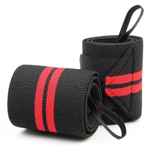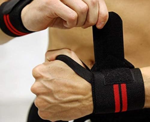 Generic - رباط معصم رياضي أسود مع خطوط حمراء، قابل للتعديل، للتمارين والرفع