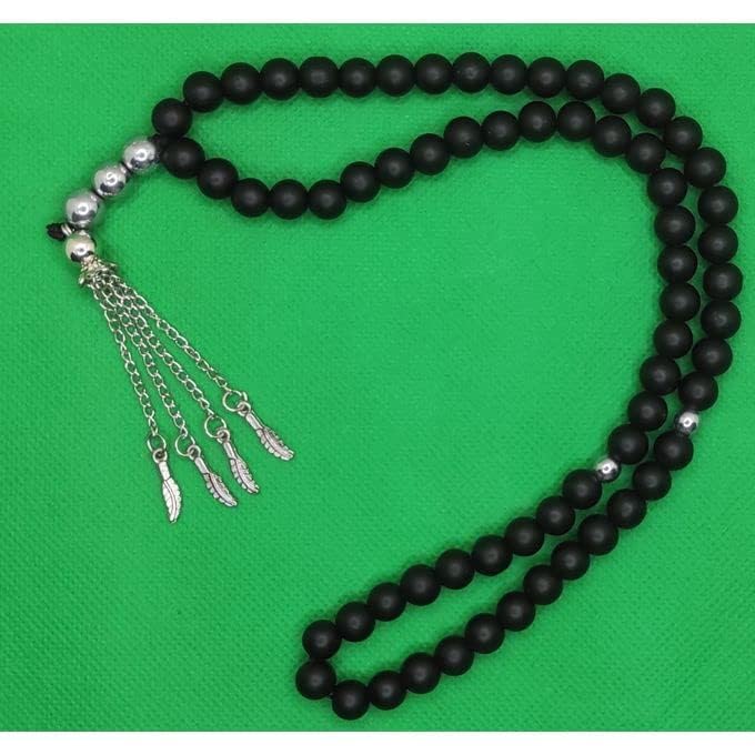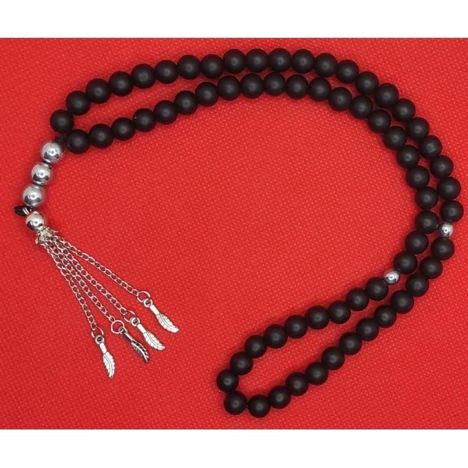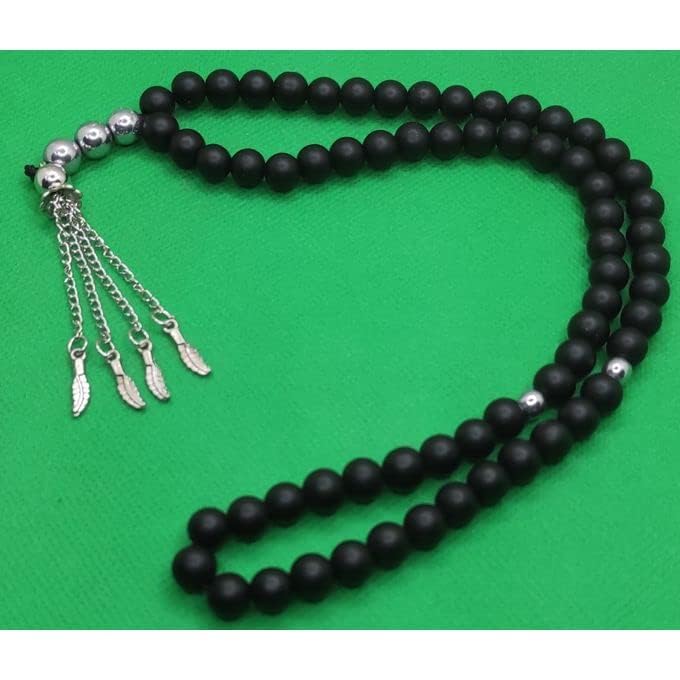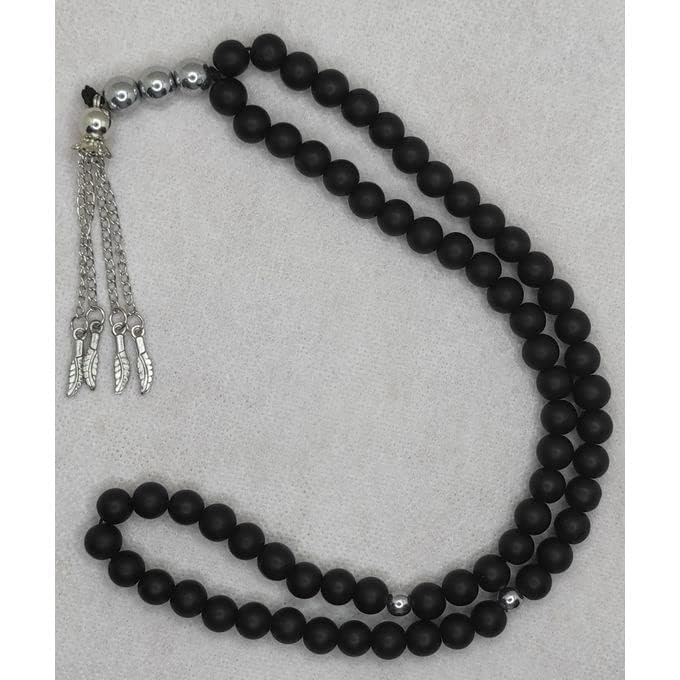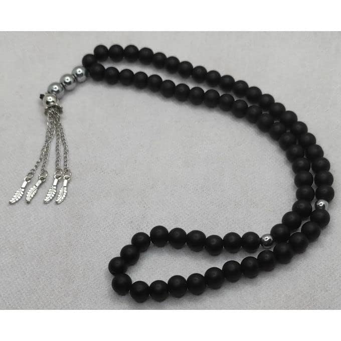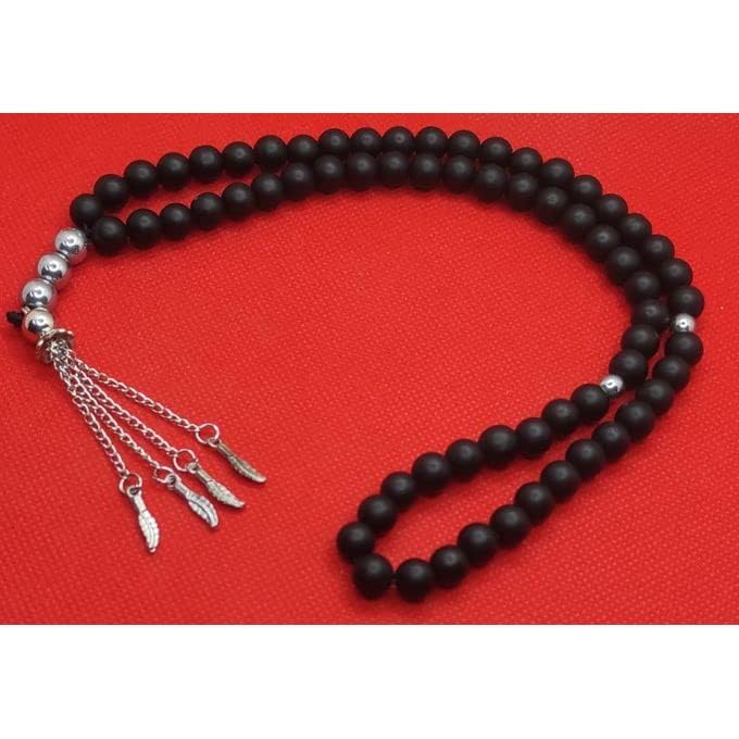 Generic - سبحة اسود مط (مطفي)من حجر الاونيكس و فواصل من حجر الهيماتيت - 66 حباية، للجنسين