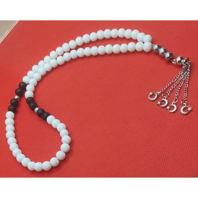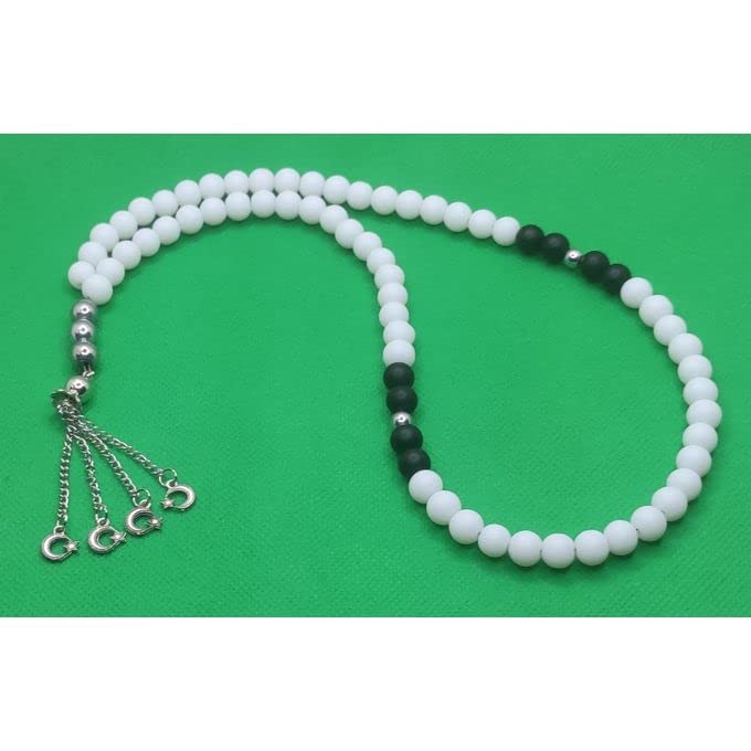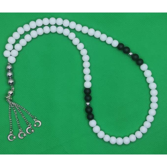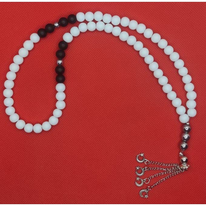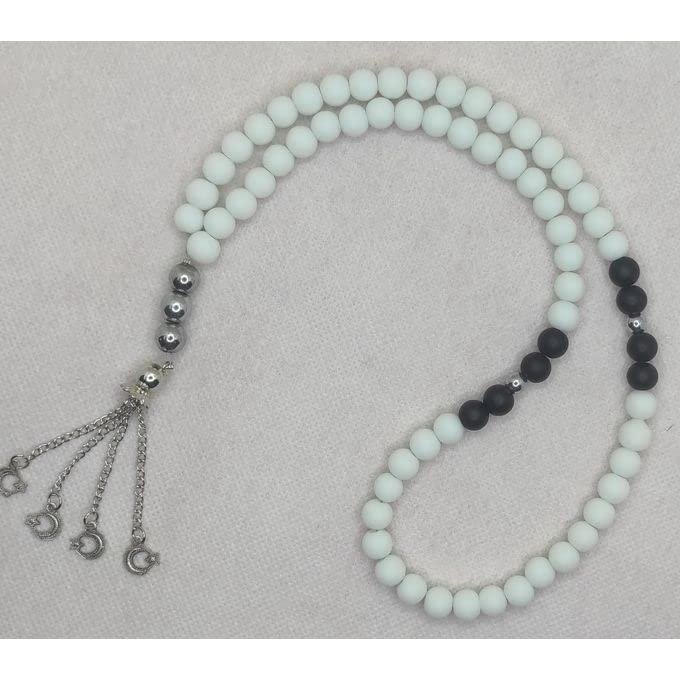 Generic - سبحة ابيض في اسود مط مطفي من حجر الاونيكس و فواصل الهيماتيت - 66 حباية للجنسين