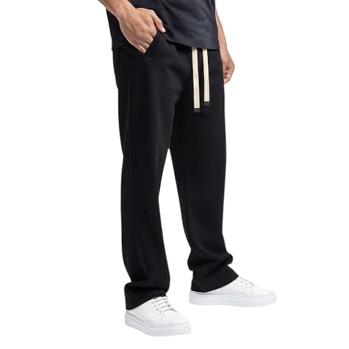 Generic - بنطلون رياضي أسود، خطوط جانبية بيضاء، قماش مريح