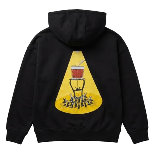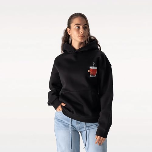 YAWZA - سويت شيرت بغطاء رأس كبير الحجم من القطن بلون أسود. كنزة صوفية سوداء بطبعة فنجان شاي امامي وظهر جرافيك بلون اصفر، هودي كاجوال للشتاء للرجال والنساء (XS S M L XL)