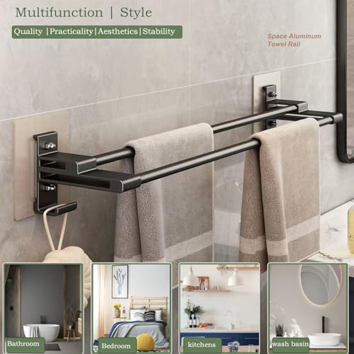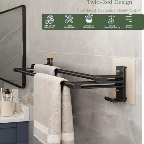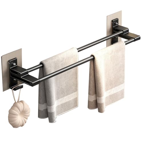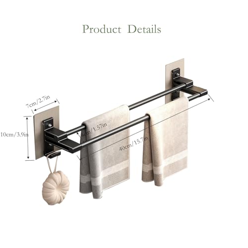 Oleegil - حامل مناشف اسود ذاتي اللصق - 40 سم / 15.7 انش، حامل مناشف مزدوج قضيب مضاد للصدأ مع خطافين للحمام والدش