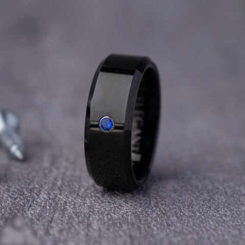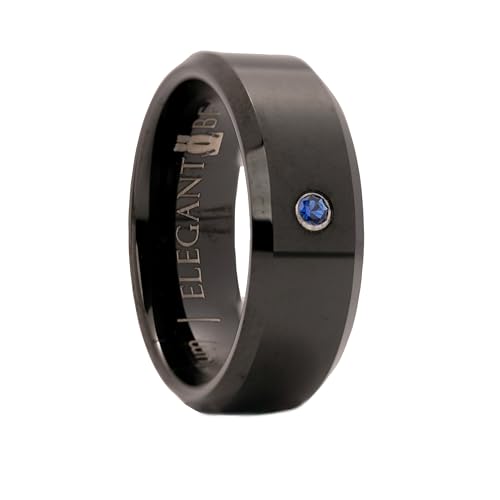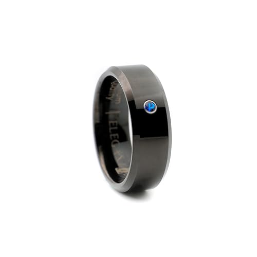 Elegant Bear - خاتم من كربيد التنجستين الاسود مرصع بحجر زركون مكعب ازرق A95