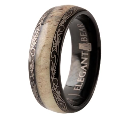 Elegant Bear - خاتم من كربيد التنجستن الاسود مرصع بلون عاجي غزال طبيعي A110