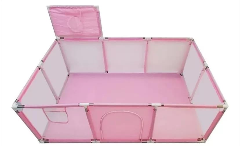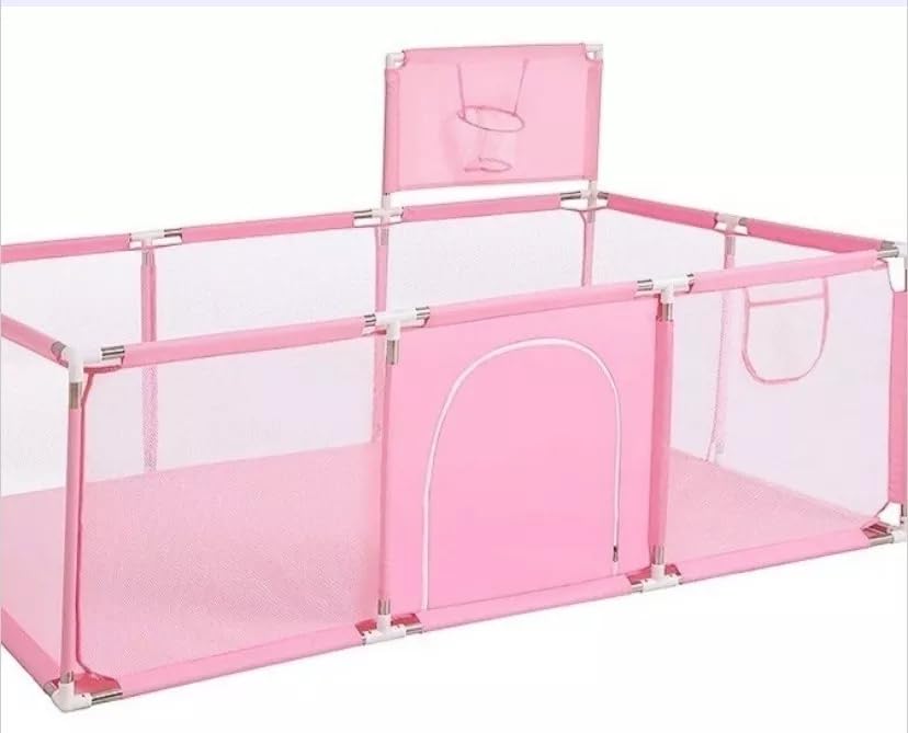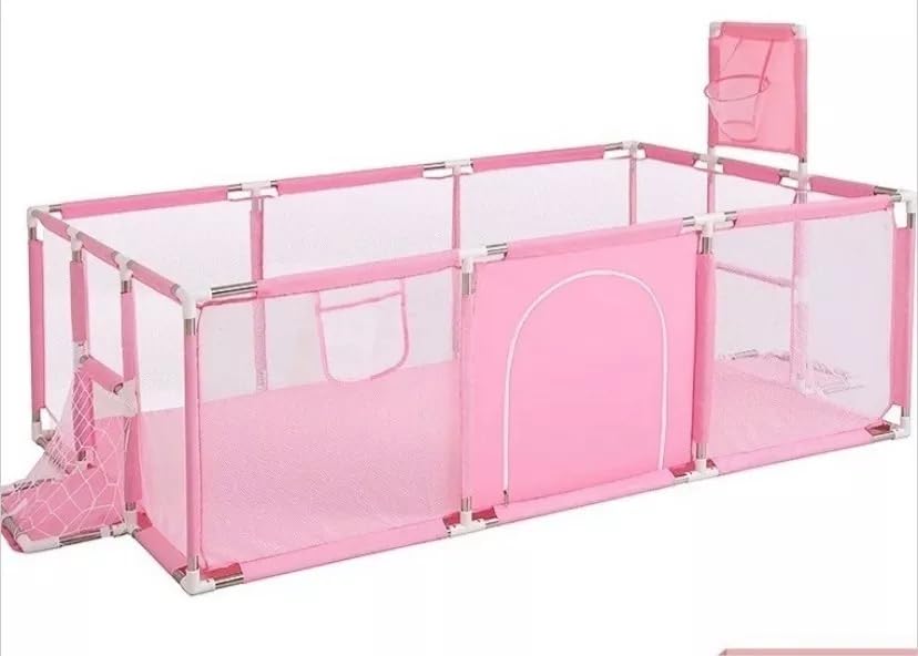 BLACK UNICORN - ساحة لعب مع سياج أمن للأطفال والرضع، قابلة للحمل من بلاك يونيكورن، 1.9 متر × 1.6 متر × 65 سم (وردي)