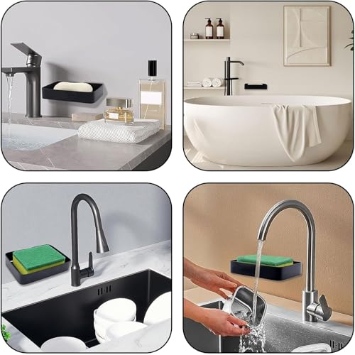 Generic - صبانة حوض مفرغة سوداء، حامل صابون معدني للحمام