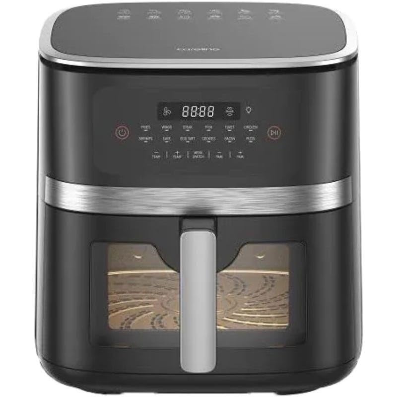 Black&White - مقلاة هوائية رقمية مربعة الشكل من بلاك اند وايت بقدرة 1800 وات وسعة 7.5 لتر وباب زجاج