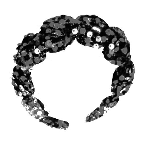 Generic - طوق شعر اسود عريض لامع نمط فستونات للنساء والفتيات