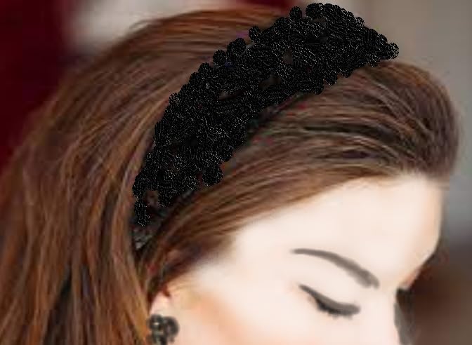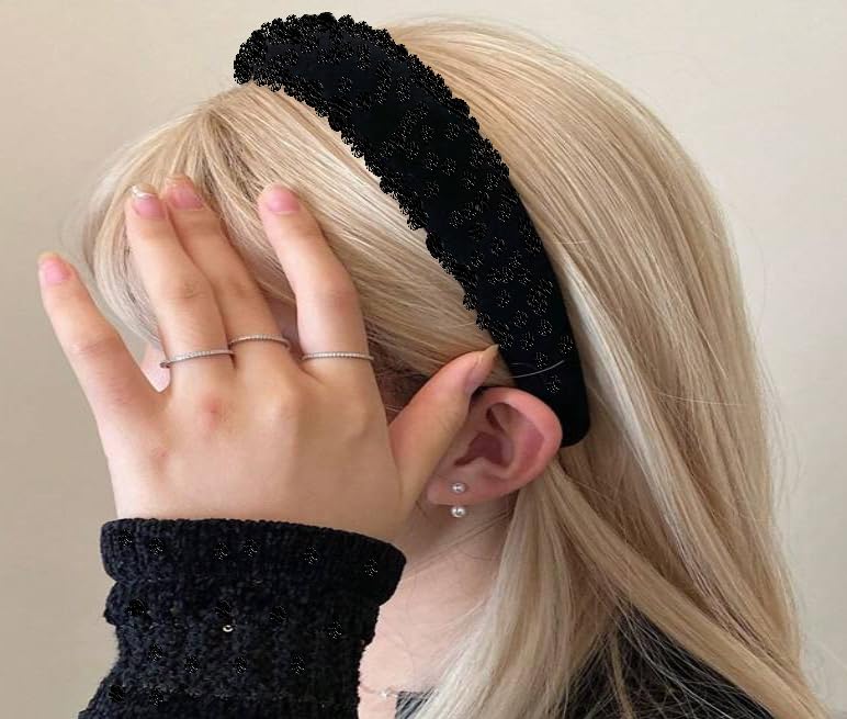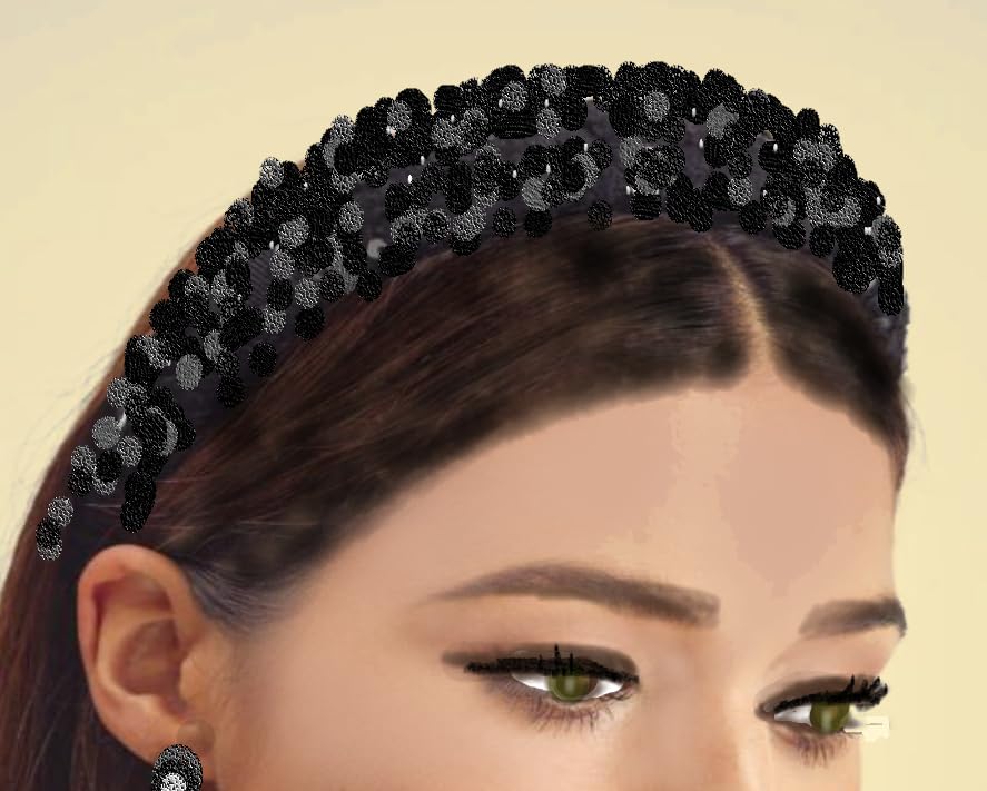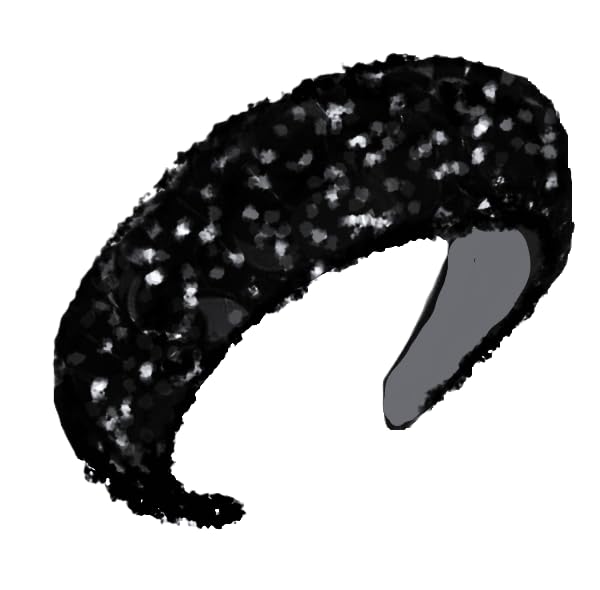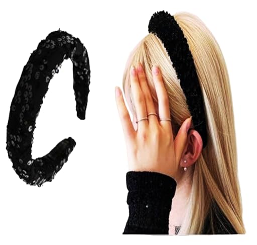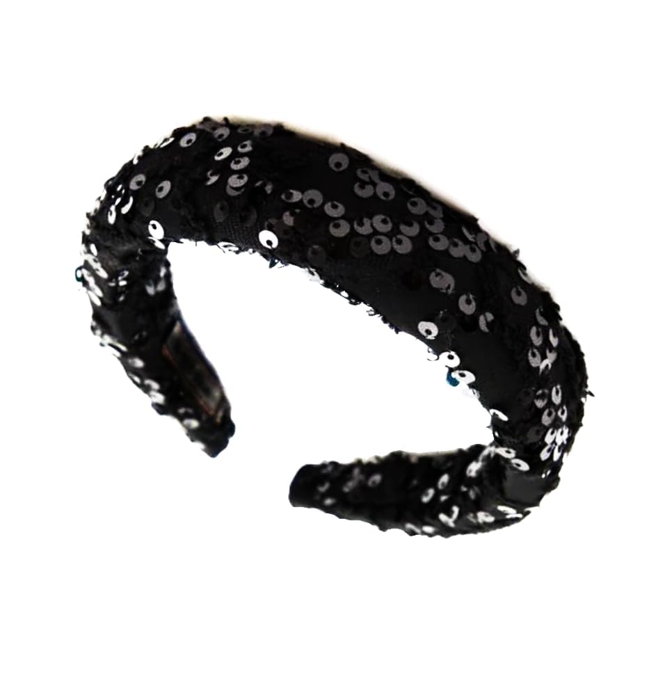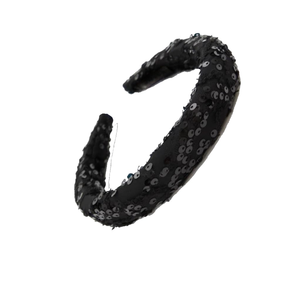 Generic - طوق شعر أسود عريض مطرز بالترتر الأسود اللامع للنساء والفتيات , عصابات رأس أنيقة للنساء, اكسسوارات تصفيف الشعر