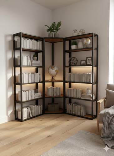 Generic - وحدة تخزين خشبية سوداء (صناعية أنيقة): مزيج أنيق من الخشب الاسود والخفيف. خزانة مكتب مفتوحة ومغلقة: تصميم يجمع بين الأناقة والعملية مع لمسة عصرية