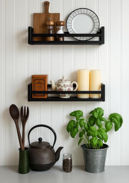 Portal Tools - رف توابل خشب منظم ومتين لسطح المطبخ للتوابل والبرطمانات والبهارات، لون أسود
