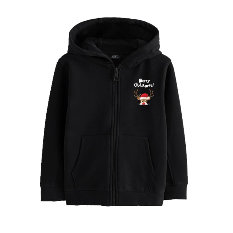 Generic - سويت شيرت بغطاء راس للكريسماس بسحاب اسود مع تصميم حيوان الرنة، طباعة عيد ميلاد سعيد، سويت شيرت للعطلات الشتوية (3-6 سنوات)