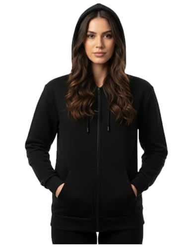 Generic - هودي اسود بسوستة واكمام طويلة وغطاء راس برباط وجيوب امامية