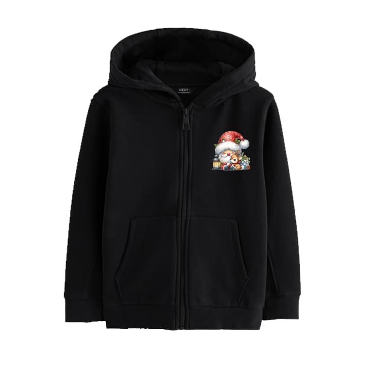 Generic - هودي اسود بسحاب مع رسومات رجل الثلج للكريسماس، جيوب امامية (مقاس M)