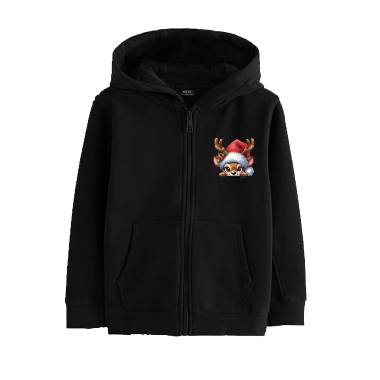 Generic - هودي اسود بسحاب مع تطريز قبعة سانتا الرنة، جيوب امامية (مقاس L)