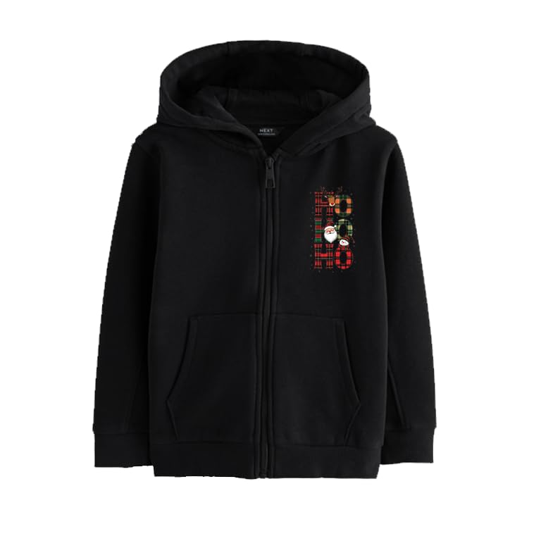 Generic - هودي اسود بسحاب مع تصميم منقوش على شكل سانتا وحيوان الرنة، موضوع الكريسماس (M)