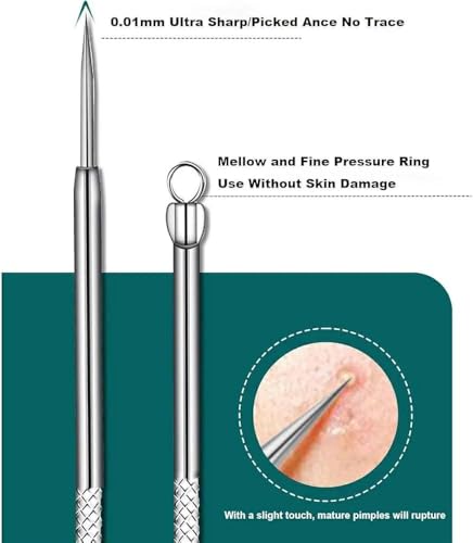 - تصميم مضاد للحساسية: الإبرة الاحترافية المطلية بالكهرباء وطلاء الستانلس ستيل لن يسبب مشاكل الحساسية، ويمكن لمجموعة استخراج البثور أن تعمل على جميع أنواع البشرة.