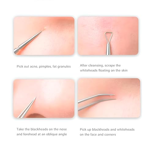 - مجموعة دقيقة كاملة للعناية بالبشرة مع أربع أدوات احترافية من الستانلس ستيل تزيل الرؤوس السوداء والرؤوس البيضاء والبثور والعيوب بفعالية دون ترك علامات، مما يمنحك بشرة ناعمة ونظيفة ومتوهجة كل يوم.