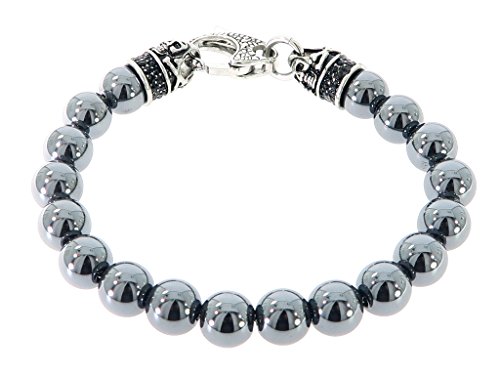 Blackjack - سوار بحلقات من الهيماتيت الاصلي الستانلس ستيل مع مشابك لوبستر امنة للبالغين الجنسين