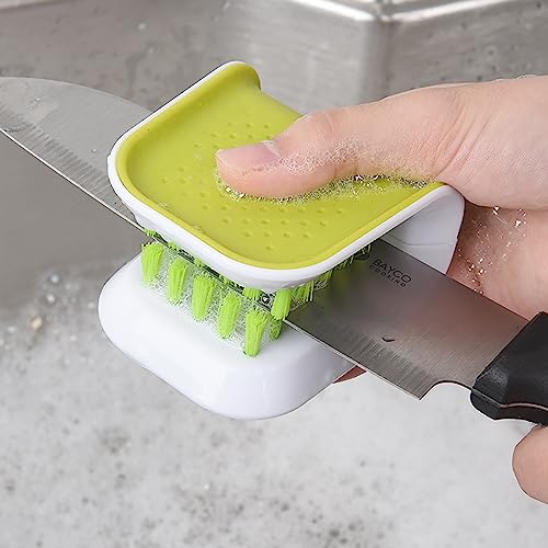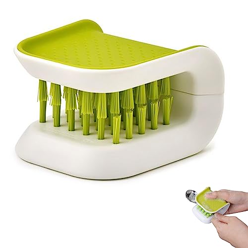 SHONDE - فرشاة شفرات لتنظيف السكاكين وادوات تناول الطعام، فرشاة بشعيرات لتنظيف المطبخ، مضادة للانزلاق (اخضر J136)