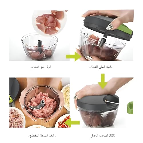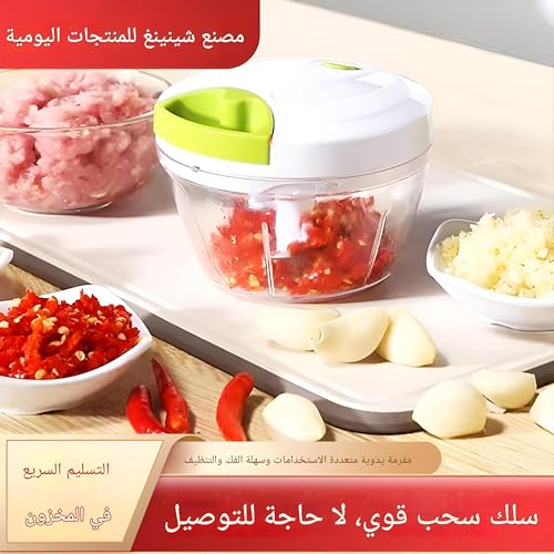 - مفرمة طعام صغيرة محمولة بسعة 500 مل وأبعاد صغيرة (حوالي 9 × 8.5 × 12.5 سم)، مصممة للتقطيع والتقليب بدون كهرباء. تتميز بثلاثة أجزاء سريعة السحب لسهولة التشغيل، وقاعدة غير قابلة للانزلاق من أجل الثبات، وثلاث شفرات منحنية حادة قابلة للإزالة من الستانلس ستيل. يعمل سلك السحب مع آلية الزنبرك على تدوير الشفرة بسرعة عند السحب. مصنوعة من مواد آمنة غذائيًا وغير سامة ومتينة، مع جميع الأجزاء قابلة للإزالة والغسل بالماء، مثالية للاستخدام في الأماكن المغلقة