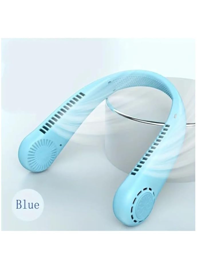 Generic - مروحة رقبة بدون شفرات، مروحة شخصية محمولة قابلة لإعادة الشحن، تبريد فائق الهدوء 360 درجة، 3 سرعات متغيرة، مروحة قابلة للارتداء بمنفذ USB للمكتب والسفر والاماكن الخارجية (أزرق)