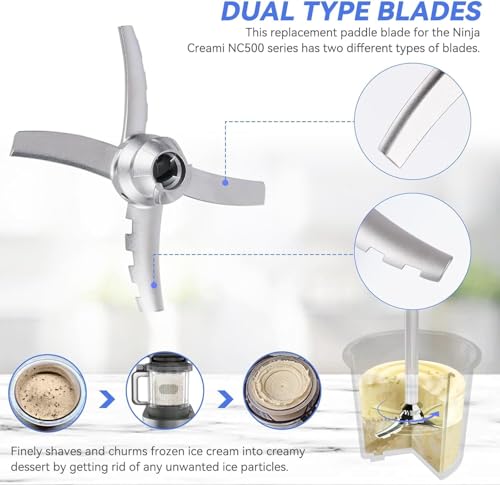 fashion mania - شفرات بديلة تناسب ماكينات صنع الأيس كريم نينجا ديلوكس NC501 - شفرة مجداف بديلة تناسب نينجا كريمريزر NC500 NC501 NC500C NC501C NC501H - فولاذ مقاوم للصدأ