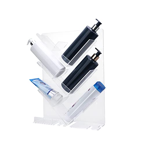 Blanks Direct - حامل بارفف متعددة من الاكريليك وقاعدة لاصقة مضادة للصدا لتنظيم قوارير الشامبو ومستلزمات الحمام (لون شفاف)