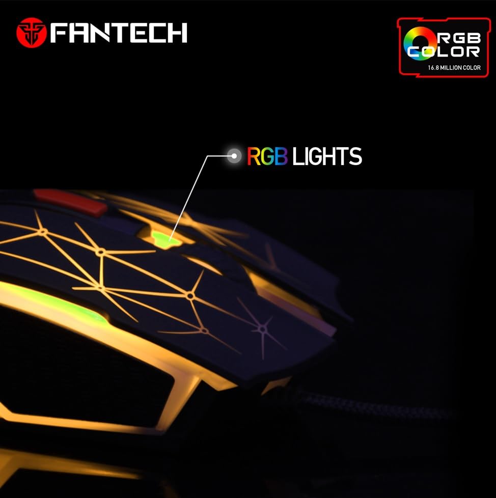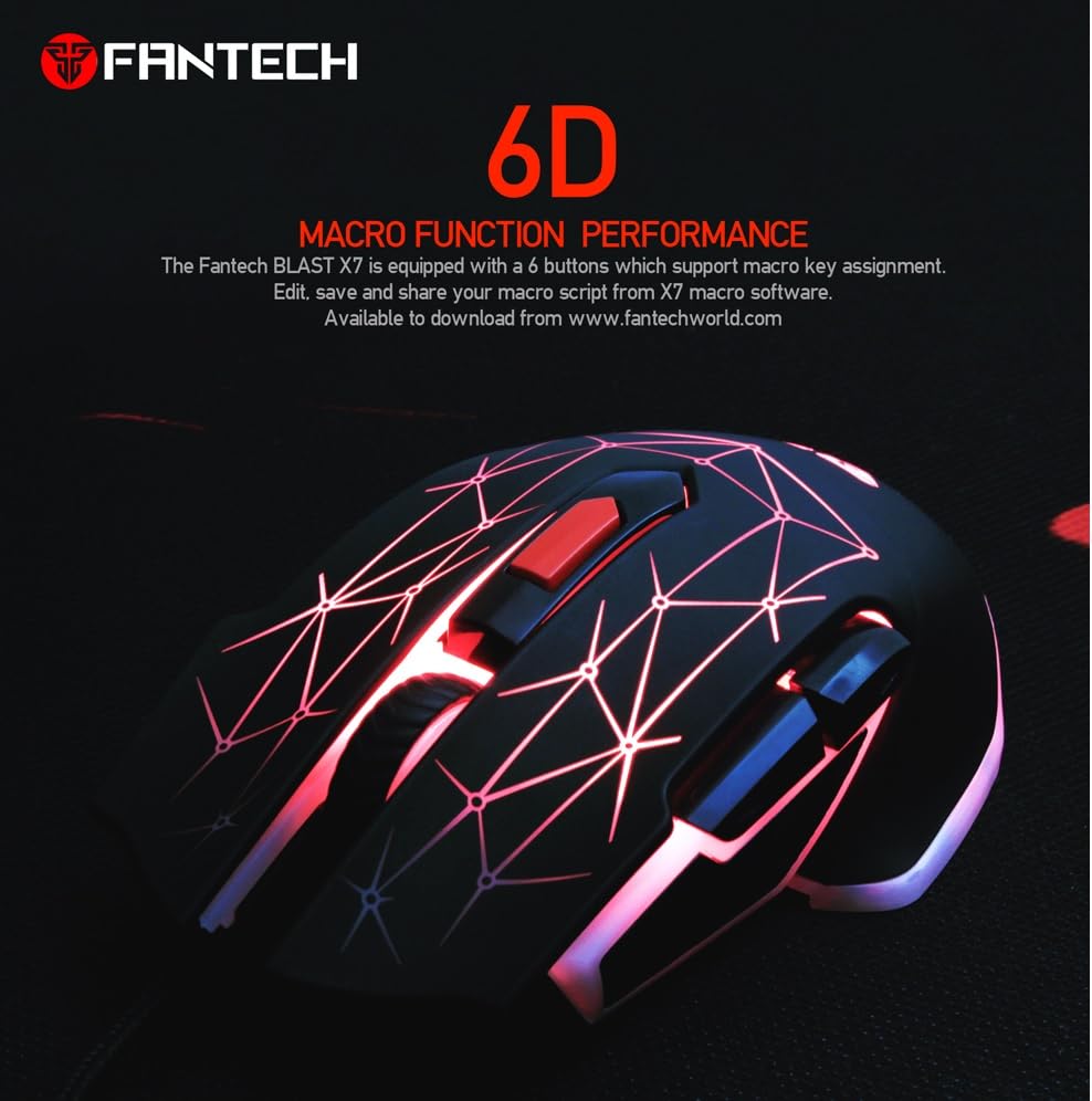 Generic - ماوس ألعاب فانتك بلاست X7- مزود بفضاء لوني ار جي بي 16.8 مليون لون- مستشعر ضوئي بدقة 4800 نقطة لكل يوصة - 6 أزرار قابلة للبرمجة، عمر مفاتيح حتى 10 ملايين نقرة