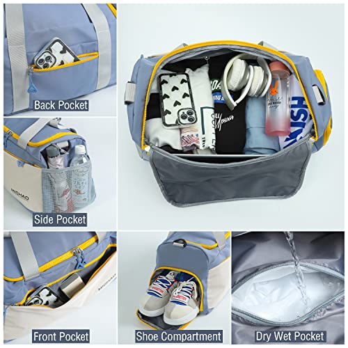BLauga - شنطة رياضية لصالة الالعاب الرياضية للنساء والرجال دفل للسفر مع جيب رطب وحجرة للاحذية تمارين اللياقة البدنية مقاومة للماء طوال الليل وعطلة نهاية الاسبوع حمل يد للمستشفى اسود البوليستر