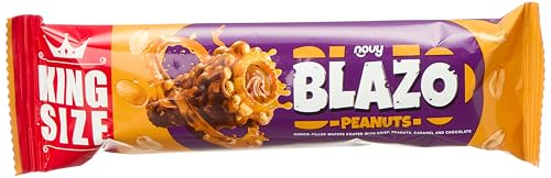 Blazo - رقائق بلازو ملفوفة محشوة بكريمة الشوكولاتة بنكهة البندق مغطاة بالكراميل والفول السوداني المقرمش المغطى بالشوكولاتة، عبوة من 6 قطع