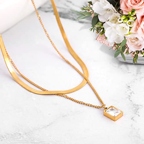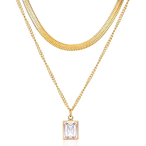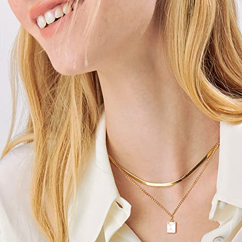 BLENACOFF - عقد بلناكوف بطبقتين ذهبي للنساء مطلي بالذهب 14 قيراط عصري طبقات قلائد انيقة مكتنزة سلسلة للفتيات مجوهرات هدايا عيد الميلاد من بليناكوف, نحاس اصفر, بدون أحجار كريمة