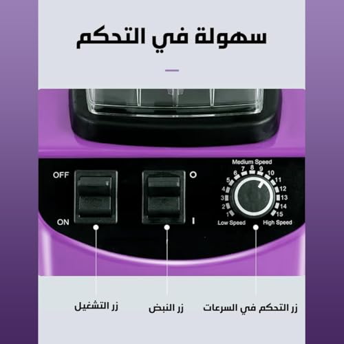 Generic - خلاط KJ2099 بقوة 1800 وات لسطح الطاولة بـ 15 سرعة، محرك من الألومنيوم والنحاس لجرش الثلج وصنع عصائر السموذي، شفرات من الفولاذ المقاوم للصدأ مع عوامل أمان ووظيفة النبض للتحكم في المزج، 2 لتر (أرجواني)