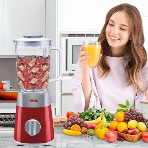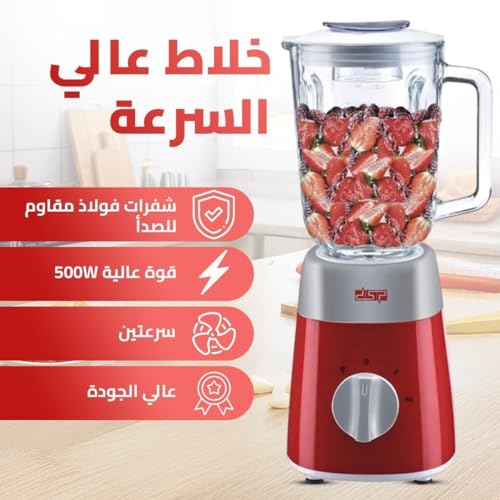 Generic - خلاط كهربائي بقدرة 500 وات KJ2038، مع وعاء زجاجي سعة 1.5 لتر، وشفرات من الفولاذ المقاوم للصدأ، سرعتان مع نبضات، لسحق الثلج وخلط العصير