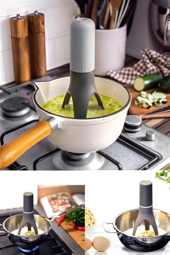 - تم تصميم أداة التحريك الأوتوماتيكية هذه للطهي بدون مجهود، مما يلغي الحاجة إلى التحريك اليدوي أثناء تحضير الصلصات أو الشوربات أو اليخنات. يساعد على الحفاظ على التجانس ويمنع الطعام من الالتصاق أو الاحتراق في الجزء السفلي من الوعاء.