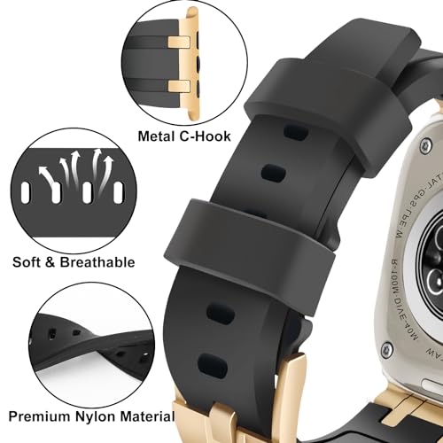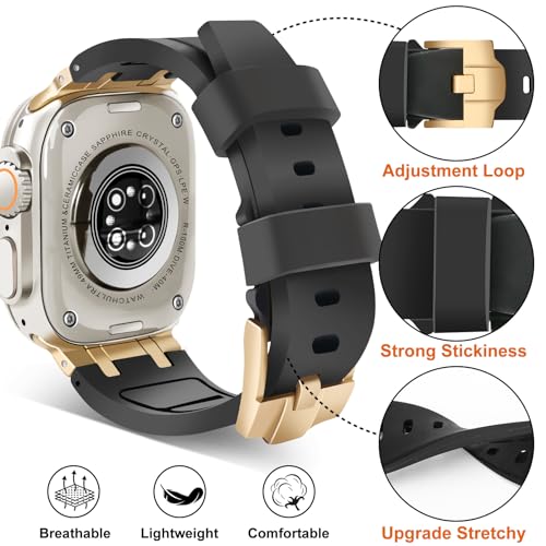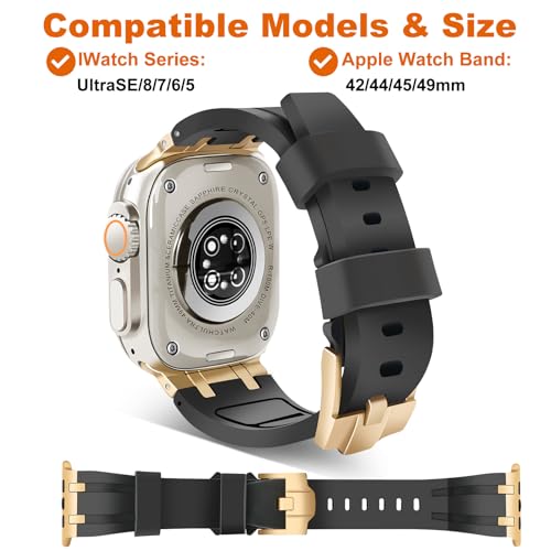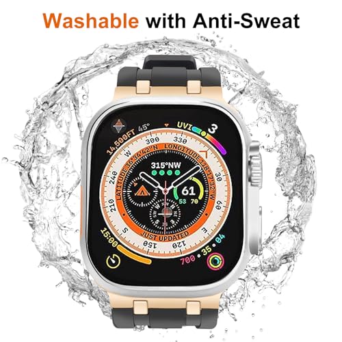 Blinddarm - سوار رياضي فاخر من بليندارم لساعة ابل الترا/الترا 2 مقاس 49 ملم 45 ملم 44 ملم 42 ملم للرجال والنساء، سوار رياضي من مطاط السيليكون الناعم مع محول من الستانلس ستيل لساعة اي ووتش سلسلة 8 7 6 5 اس اي