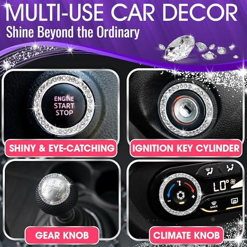 Bling Car Decor - ستيكرات لاصقة على شكل حلقة لامعة للسيارة، حلقة كريستال من حجر الراين لتزيين السيارة، اكسسوارات سيارة لامعة للنساء مناسبة لزر التشغيل، ومفتاح الاشعال وحلقة المقبض، ديكور داخلي ساحر للسيارة (فضي)