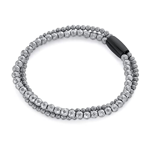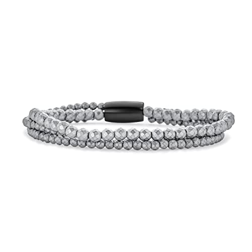 Bling Jewelry - سوار من خرز الهيماتايت متعدد الاوجه بلون رمادي معدني ستاكد فاشن للنساء والمراهقات للعلاج بالطاقة والتوتر والقلق احجار كريمة هيماتايت