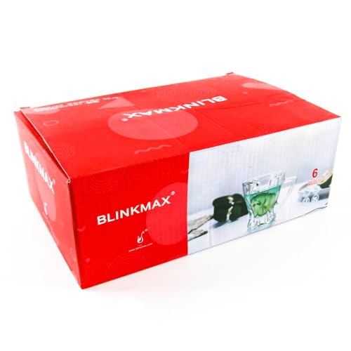 BlinkMax - أكواب زجاجية بيور كريستال من بلينك ماكس، 6 قطع، 350 مل، حديث، لون شفاف