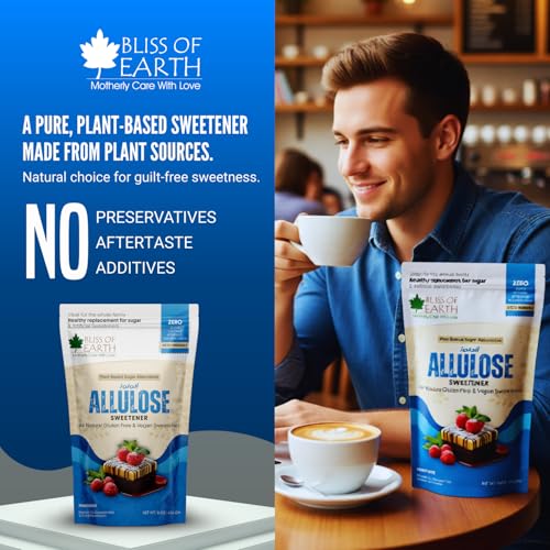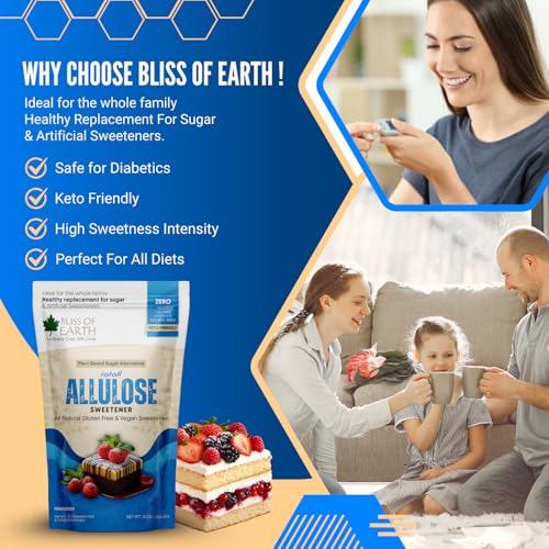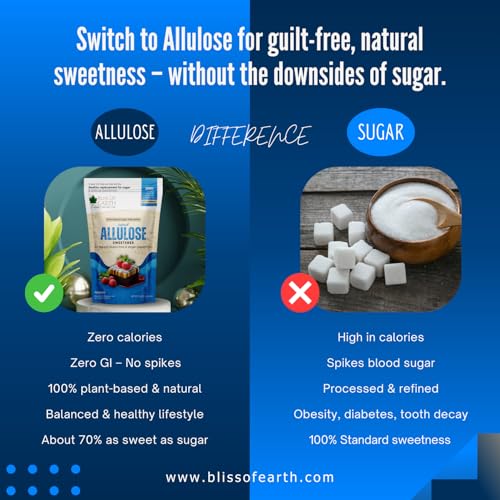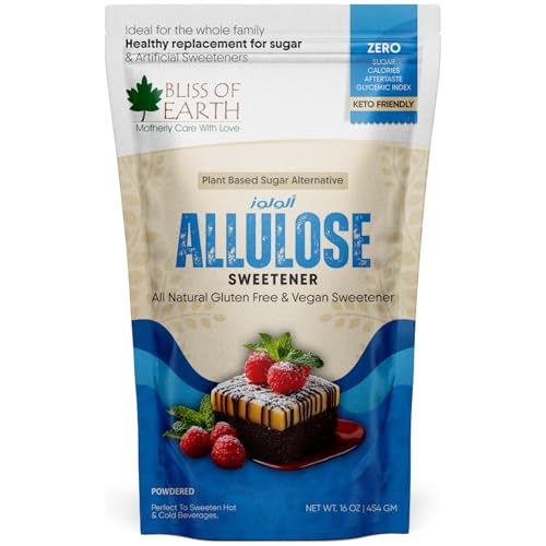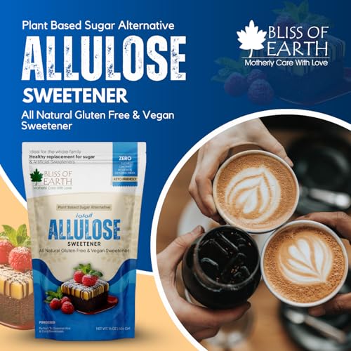 BLISS OF EARTH - محلي ألولوز من بليس اوف ايرث، محلي كيتو بدون سعرات حرارية، بديل طبيعي للسكر، مسحوق ألولوز لا يرفع مستوى السكر في الدم، غير معدل وراثيا، نباتي، مثالي للخبز والمشروبات، 454 جم