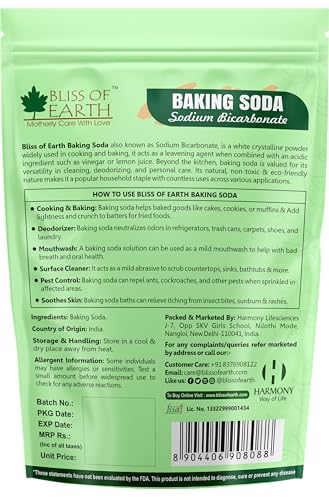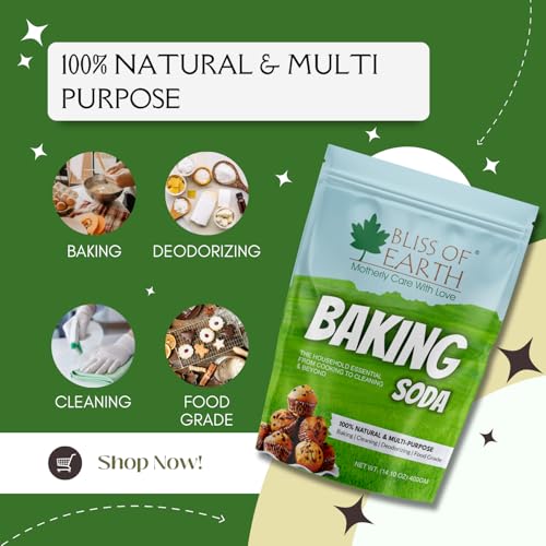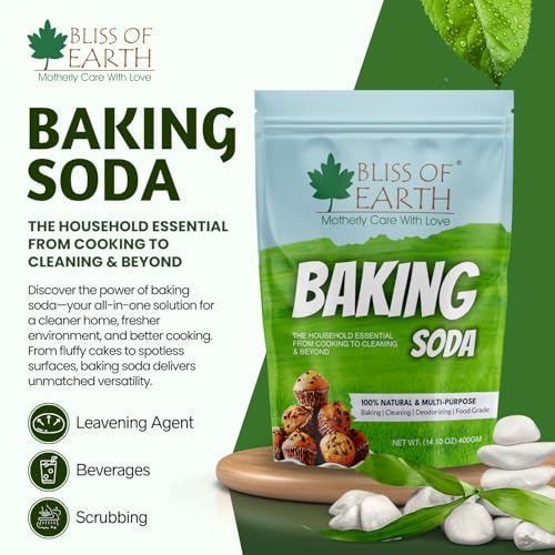 BLISS OF EARTH - بليس أوف إيرث صودا الخبز للطعام والتنظيف، 400 غرام، بيكربونات الصوديوم النقي للخبز والتنظيف وازالة الروائح الكريهة، امنة غذائيا، غير معدلة وراثيا وصديقة للبيئة