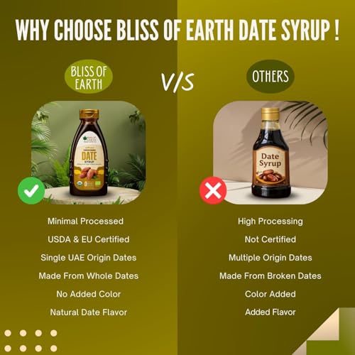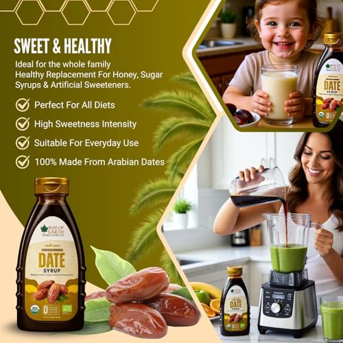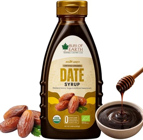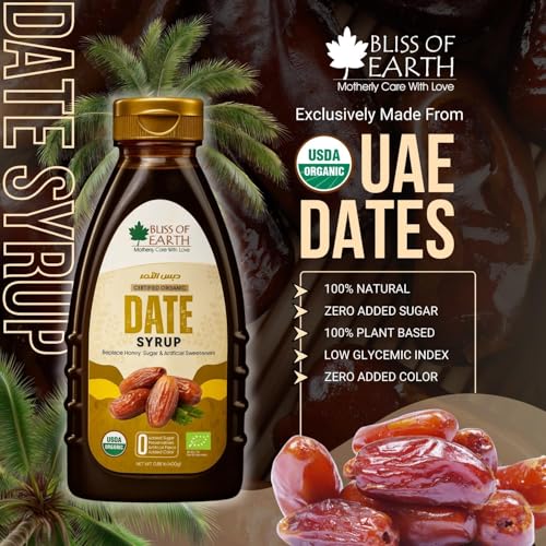 BLISS OF EARTH - شربات تمر خالي من السكر معزز بنكهة العسل مصنوع من تمور إماراتية من بليس اوف ايرث، 400 جم