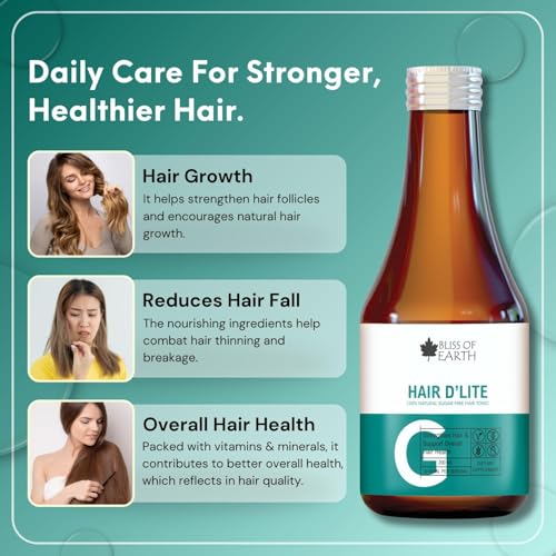 BLISS OF EARTH - مزيل سموم الشعر لنمو الشعر والتحكم في السقوط - طبيعي وخال من السكر | مناسب للرجال والنساء | 200 مل من بليس أوف إيرث